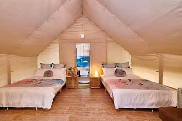 大安濱海遊客中心及其周邊設施現已委由民間業者經營,打造中部海線觀光新亮點——「向海那漾」豪華露營區,提供舒適的免搭帳露營住宿服務,讓遊客能如同在五星級飯店般享受海邊假期、親近海洋、享受夕陽美景。