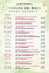 臺中市家庭教育中心【115年4月份活動一覽表】🍀幸福相伴🍀
